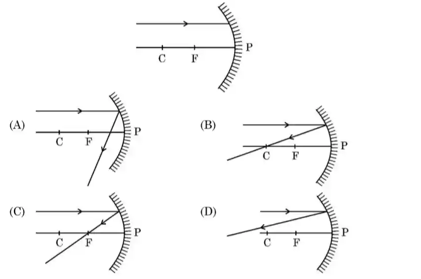 4. Identify from the following the ray diagram which shows the correct path of the reflected ray for the ray incident on concave mirror as shown