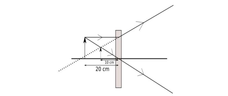 D. An object is placed 20 cm in front of a lens which is used in a flashlight, and the image is formed 10 cm away from the lens on the same side as the object. Calculate the focal length of the lens.